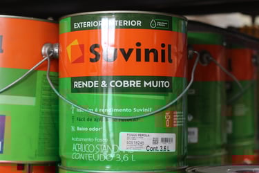 Na hora de pintar, conte com quem entende de qualidade. Trabalhamos com as marcas Maza, Suvinil e Coral, referências no setor de tintas imobiliárias, reconhecidas por oferecerem alto desempenho, durabilidade e excelente cobertura.